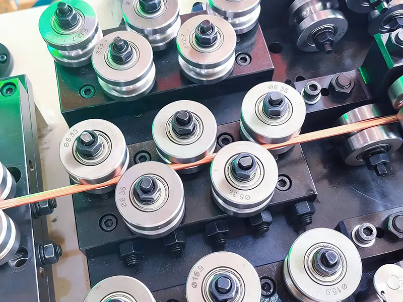 Το εργοστάσιο έλασης GRM προσφέρει ηλεκτρομαγνητικό συρμάτινο έλασμα υψηλής ακρίβειας, σχεδιασμένο για διαμόρφωση ακριβείας ορθογώνιων μαγνητών συρμάτων. Ο εξοπλισμός χρησιμοποιεί διαδικασίες εξώθησης ή ψυχρής έλασης και διασφαλίζει ότι το σύρμα έχει ακριβή γωνιακά σχήματα μέσω πολλαπλών διελεύσεων και μπορεί να μονωθεί με εμαγιέ, χαρτί ή πολυεστερικό περιτύλιγμα. Το ελασματουργείο διαθέτει σύστημα ελέγχου πάχους και πλάτους υψηλών προδιαγραφών για την εξασφάλιση εξαιρετικής πυκνότητας πηνίου και ποιότητας μόνωσης και χρησιμοποιείται ευρέως στην κατασκευή ηλεκτρικού εξοπλισμού υψηλής απόδοσης, όπως κινητήρες, μετασχηματιστές και μετατροπείς.